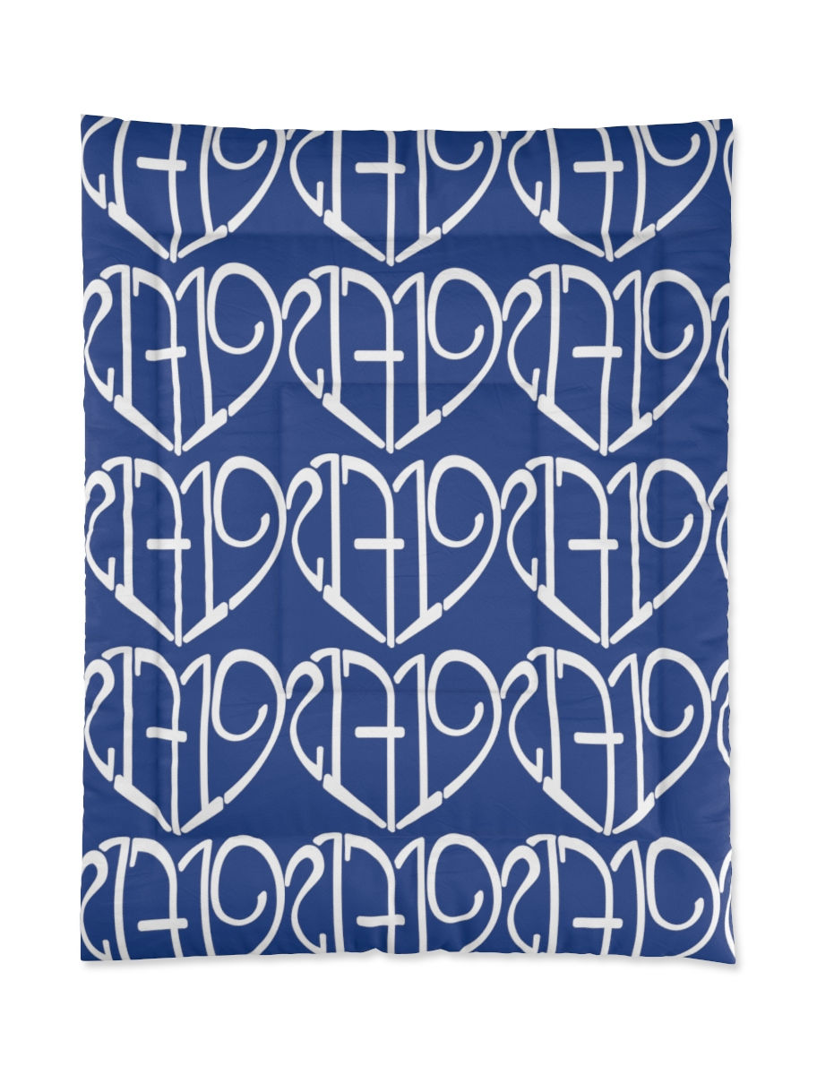 Bring the spirit of Camp Louise to your bunk with our Heart-Shaped 21719 Comforter. The 21719 heart-shaped zipcode is an all-over pattern in white against a Louise blue background. This comforter is not just bedding; it's a perfect way to make every night feel like a cozy camp reunion.🌙 Camp Love All Over: The heart-shaped 21719 pattern covers the entire comforter, creating a visual symphony of camp memories. Drift off to sleep surrounded by the cherished moments and connections that make Camp Louise special.💙 Soothing Blue Background: The calming blue backdrop sets the tone for restful nights, evoking the tranquility of camp evenings. It's a visual reminder of the serene moments spent under the camp sky.🛌 Comfortable and Cozy: Made for comfort, this comforter not only represents camp spirit but also offers a cozy addition to your sleep away camp bunkbed. It's perfect for dream-filled nights filled with the warmth of camp love.